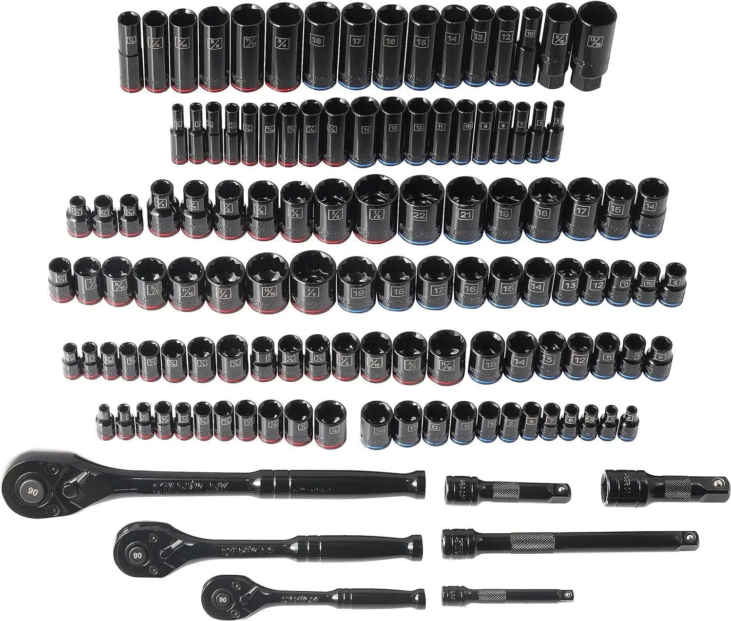 - 【POPULAR SIZES & DESIGN】SAE and Metric ratcheting wrench includes: 8, 9, 10, 11, 12, 13, 14, 15, 16, 17, 18, 19 mm. 5/16, 3/8, 7/16, 1/2, 9/16, 5/8, 11/16, 3/4 inch sizes.