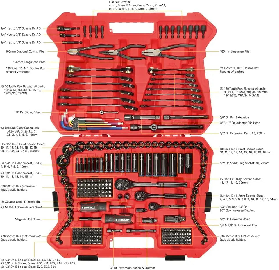 STARWORK TRUE MECHANIC™ 305-Piece Mechanics Tool Set, 120T, 2-IN-1 Reversible Ratcheting Wrench, Professional Metric Set