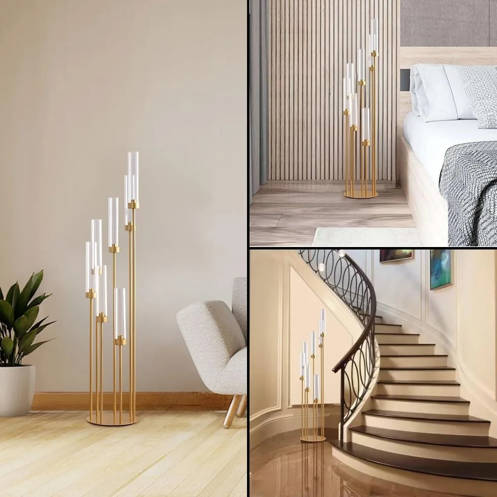 4Sets 7 Arms Floor Candelabra Wedding Centerpieces, Gold 48" Tall Metal Candlestick Holders with Acrylic Removable Lampshade