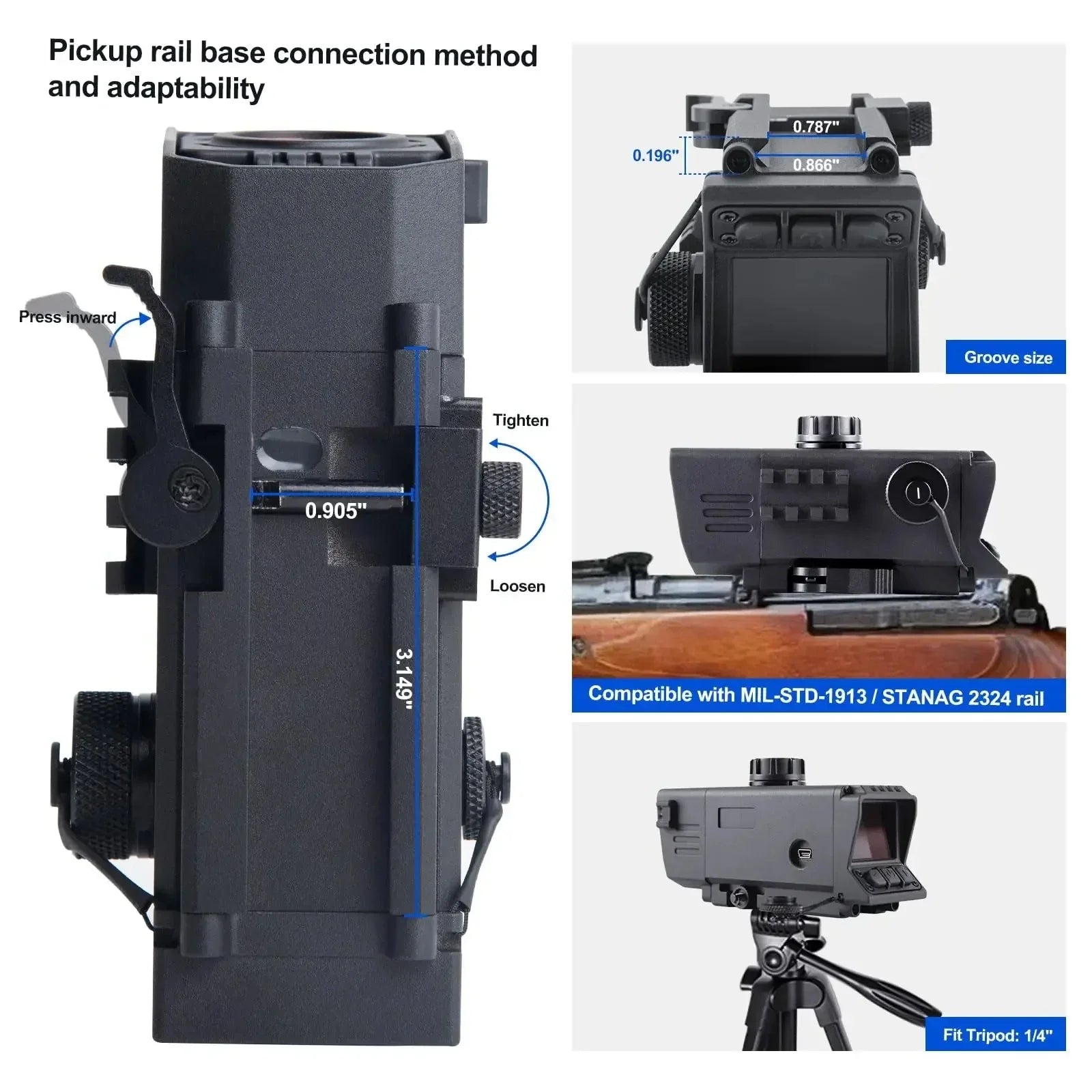 ◆ Specifically designed for rifle and shotgun shooting: it can be mounted directly to a Picainny rail, also known as a fishbone, also known as a MIL-STD-1913 rail or STANAG 2324 rail, the night vision Aiming is IP67 waterproof grade;