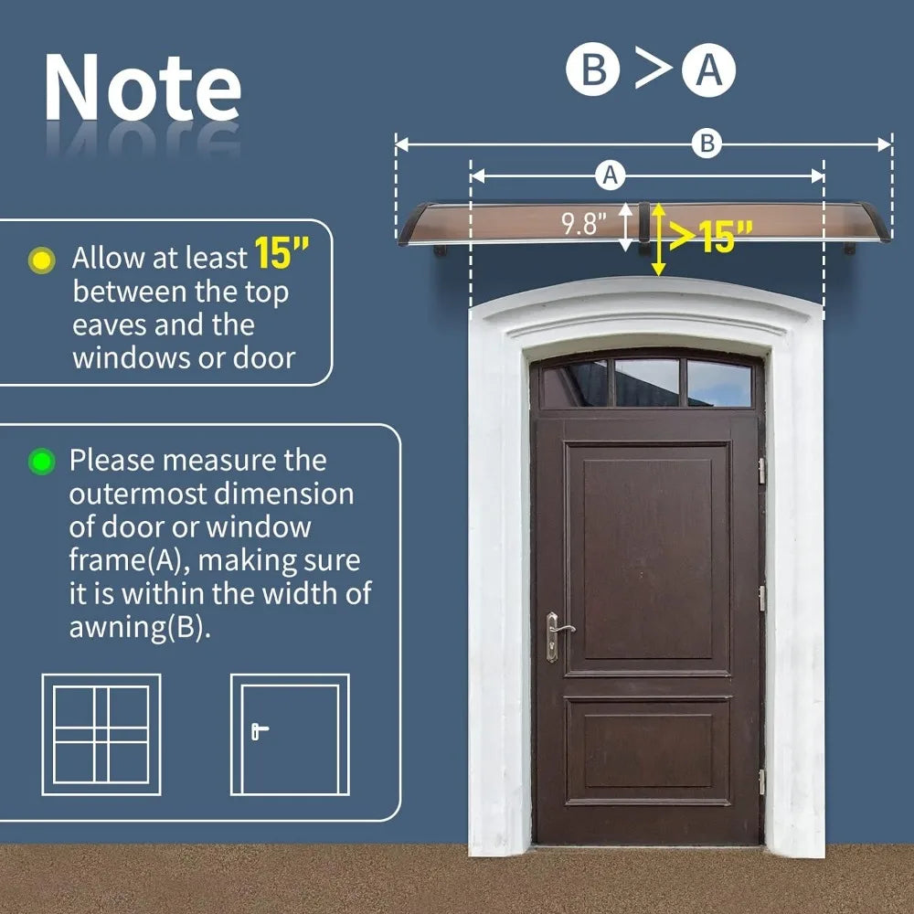 - 【SENCE APPLICATION】 - The modern and elegant style of our awning can be used for residential or commercial application, for example, it can be placed on lower doors, windows and patio in the courtyard. Note: Please confirm whether the size you measured is correct before purchase. If you have any questions, please don't hesitate to contact us.