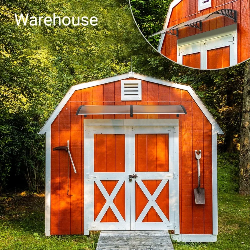 - 【DURABLE MATERIALS】 - Patio door window awning canopy is made of a 5mm clear hollow polycarbonate panel, plastic firm bracket and aluminum bar, this awning resists rusting and corrosion from the elements. Seamless surface, no water leaking, looks sleek, lightweight sturdy.